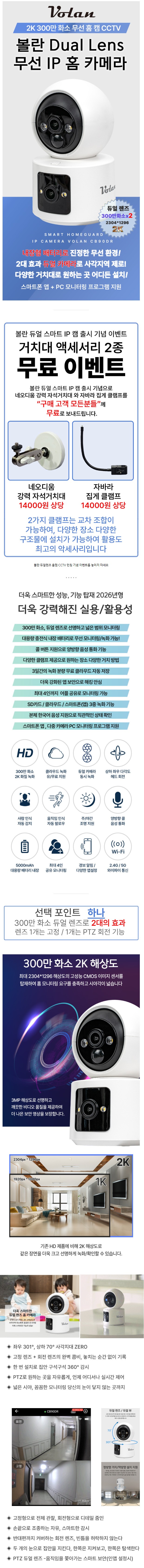 볼란 홈캠 현관 CCTV 펫 아기 캠 강아지 300만화소 듀얼 렌즈