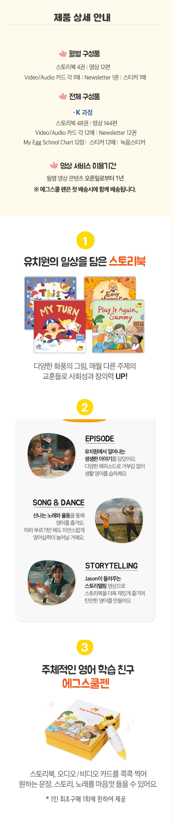 1월부터 12월까지 미국 유치원생이 실제로 배우는 월별 시즌별 현지 영어를 스토리북, 시트콤, 노래, 춤, 스토리텔링, 뮤직비디오 등 다양한 콘텐츠로 흥미롭게 익힐 수 있습니다.