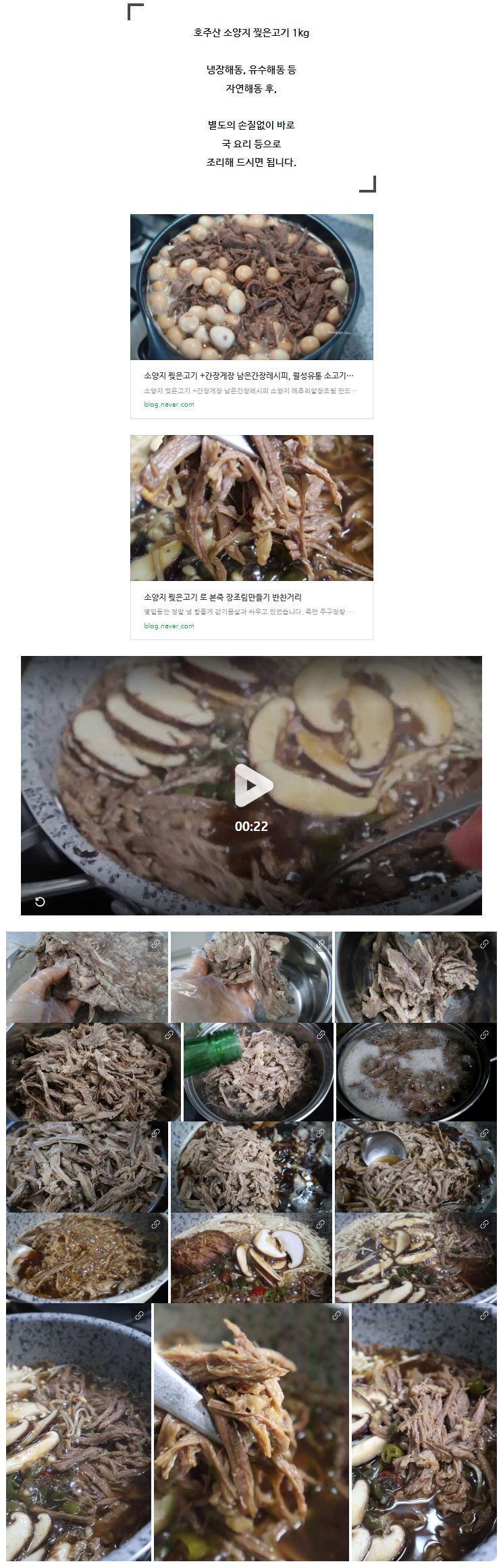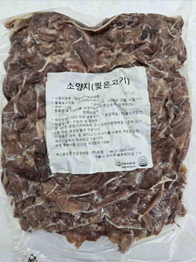 손질완료후 삶아서 찢은 소양지 고기로 해동후 바로 여러 요리에 활용 가능